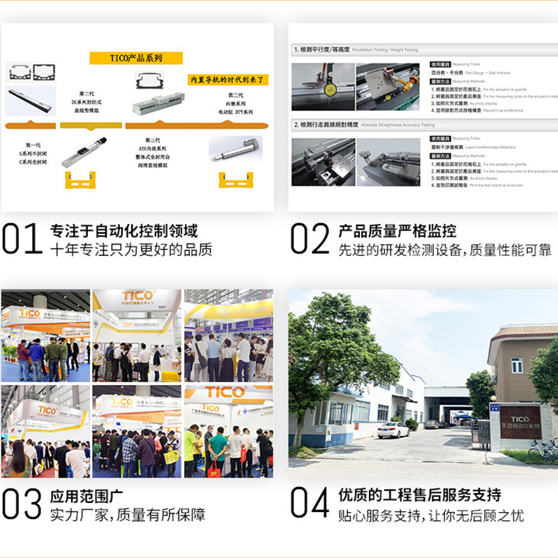 科洋代理的天功直线模组精度高,定位精度可达±0.005mm;直接驱动无背隙,噪音低,寿命长,速度快,配置高,进口光栅,编码器,驱动器,质量稳定可靠。采用欧美日选材标准,执行欧美日设计技术和生产标准,模组质量稳定,动力性能优异,具有高速、长行程、以及可在同轴上配置多个搬运器等特点。广泛应用于直线模组驱动型工业机器人,各轴可根据客户要求定制。