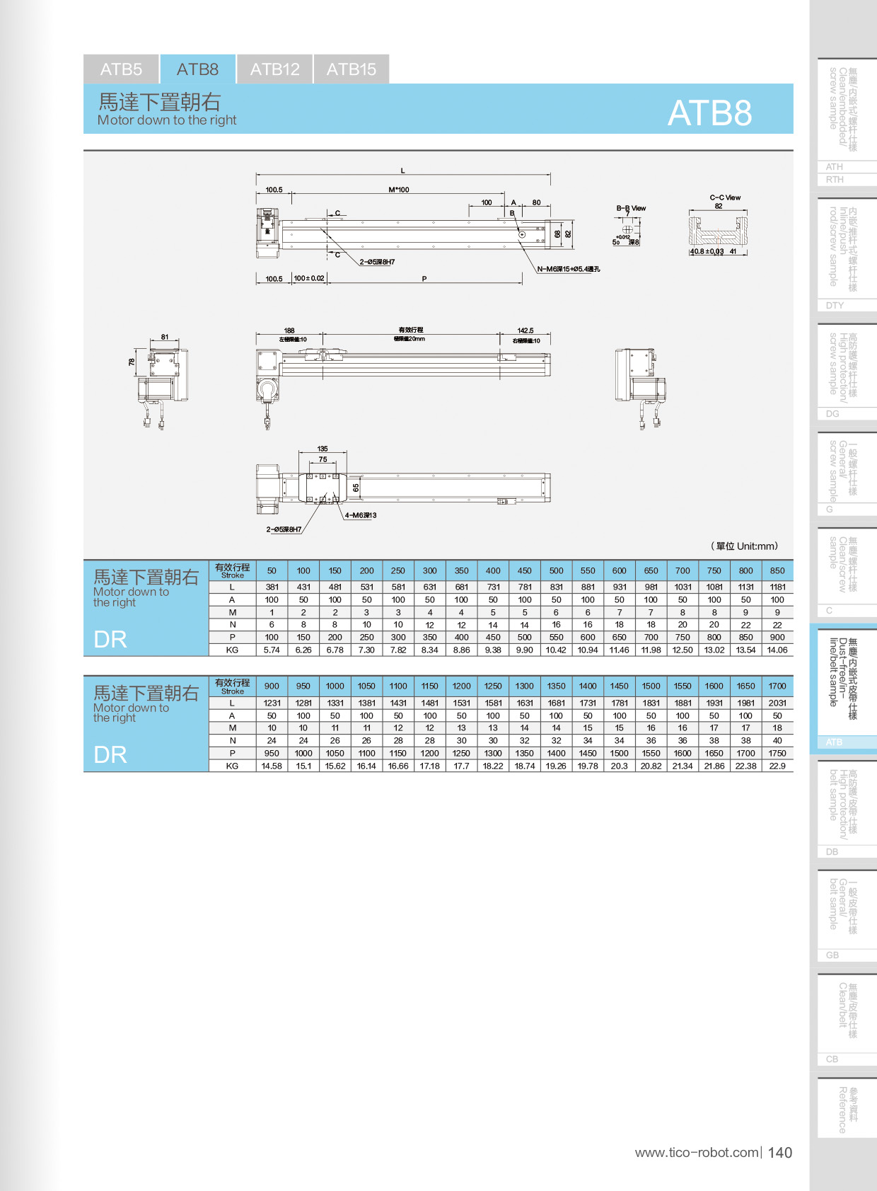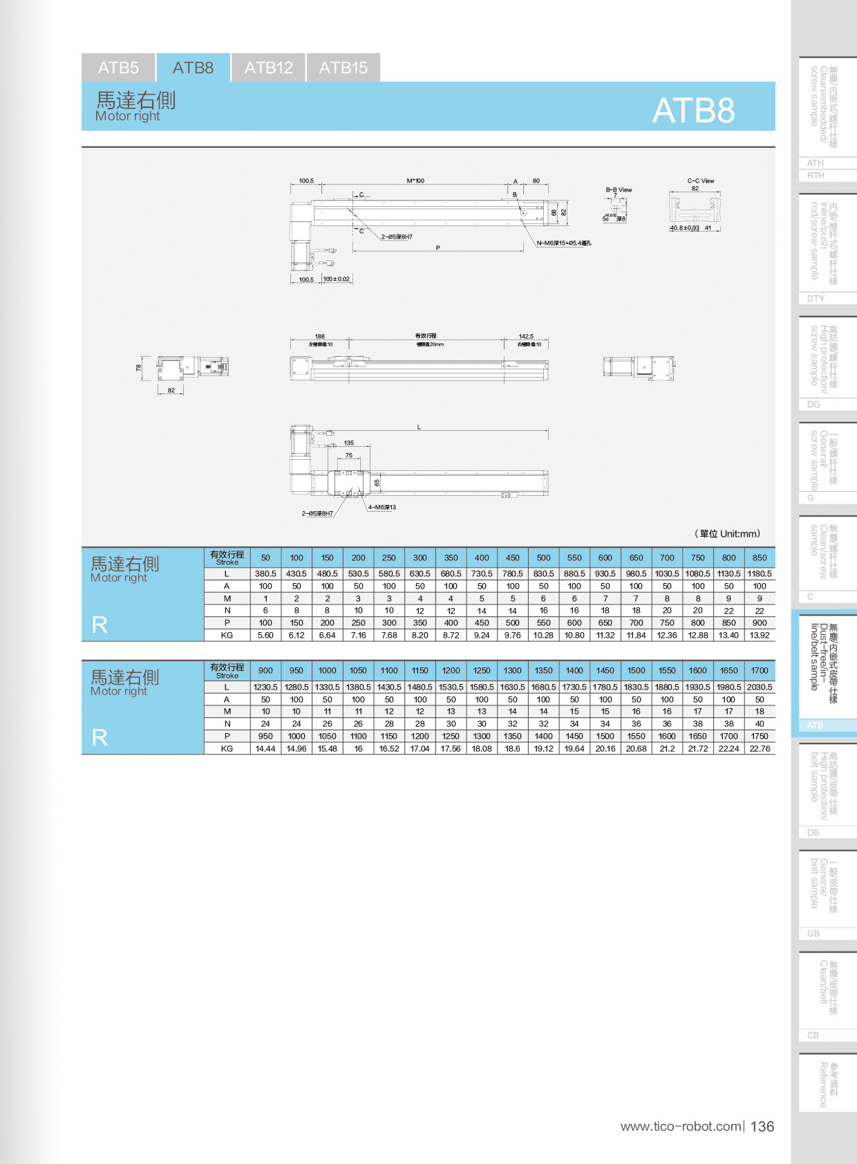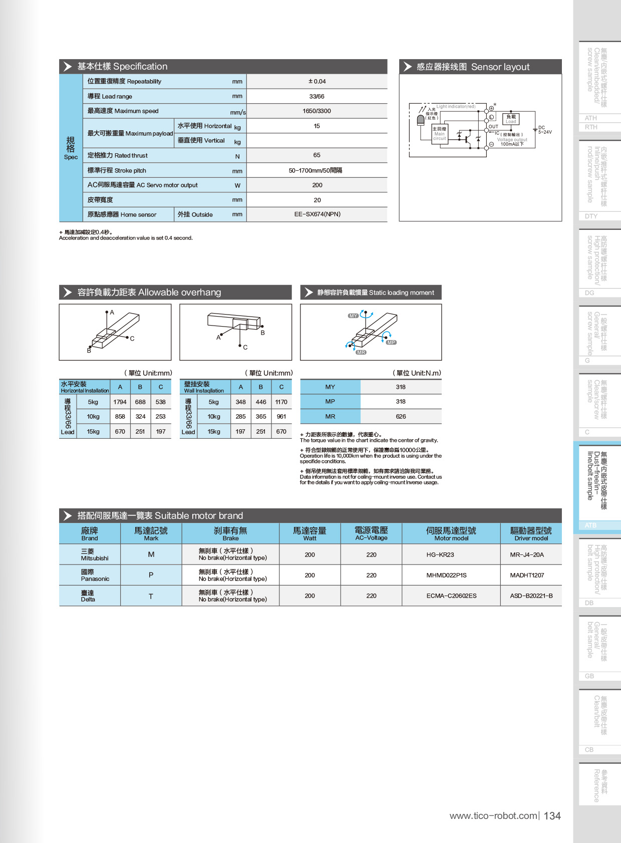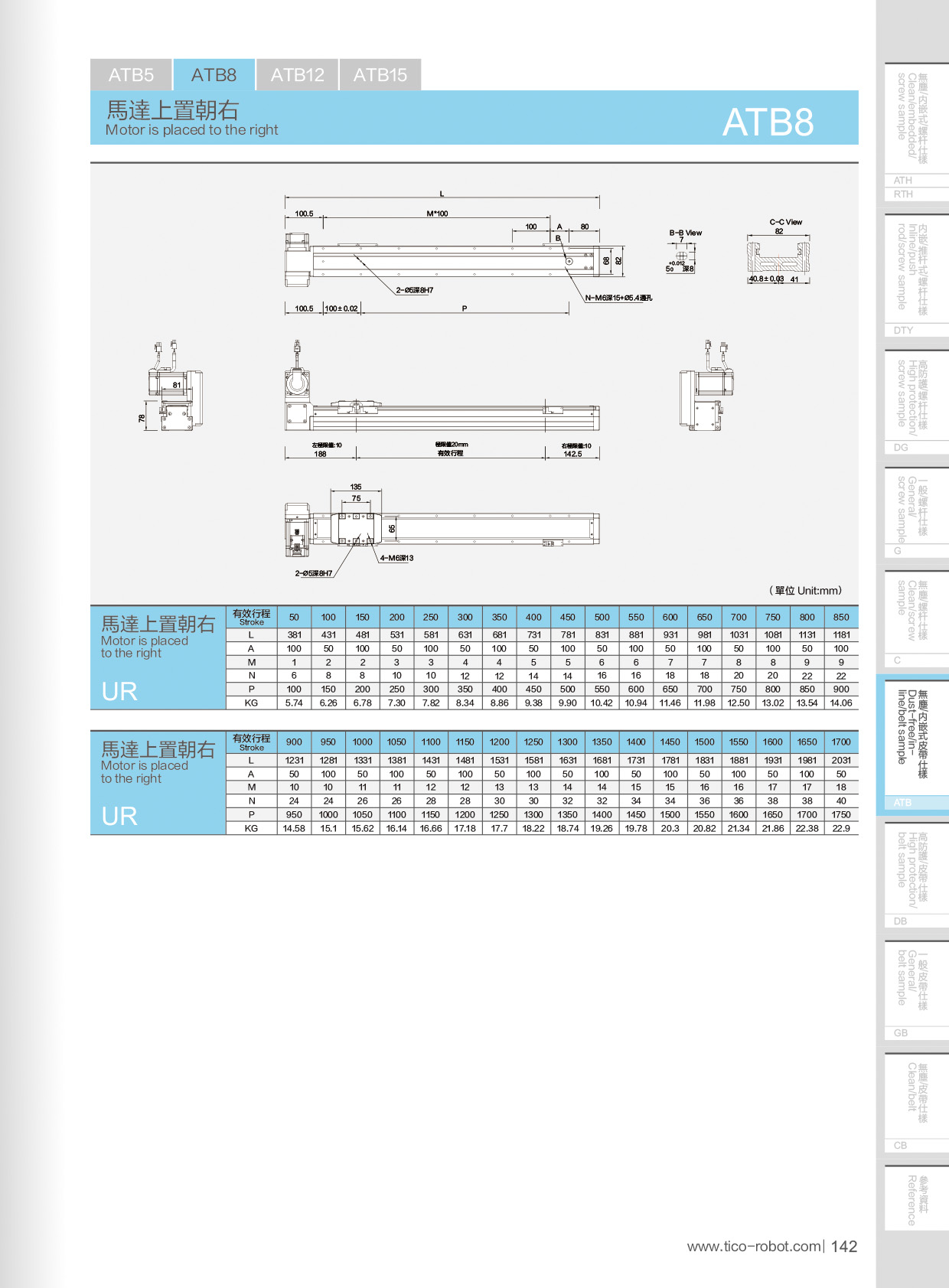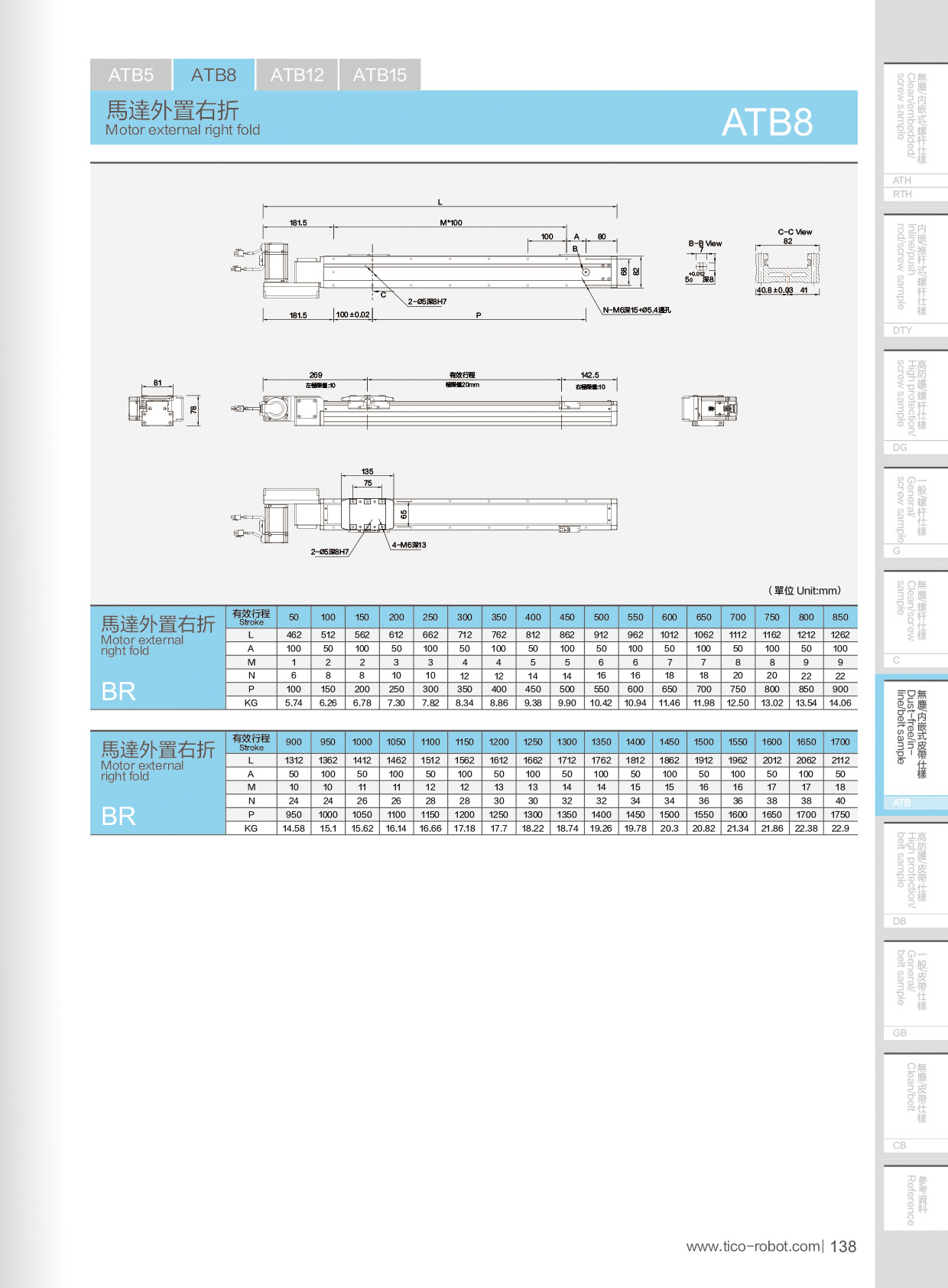 ATB系列采用同步带传动,速度快,配置伺服电机可达4200mm/s,重复精度:±0.04,同步带滑台模组-特别适用于高速运动需求。